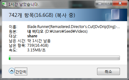 | NAS 로 사용 시 | 3.15MB/s | LAN 100Mpbs (12.5MB/s) | |||