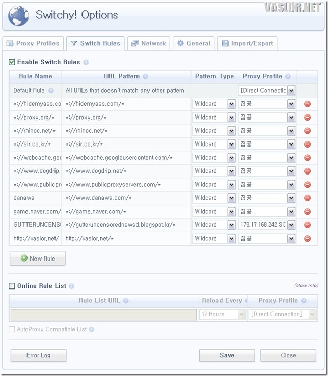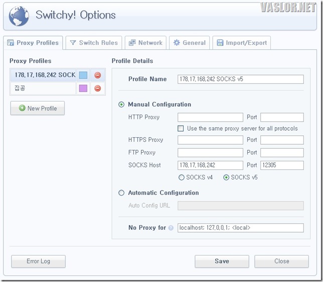크롬의 확장기능인 proxy-switchy와 같은 것을 사용하면, 특정 주소에만 특정 프록시 서버 (proxy server)를 사용하도록 설정할 수 있다.