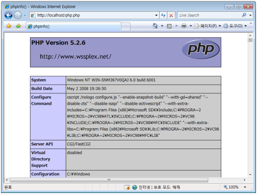 웹브라우저에 php 정보 화면이 나오면 잘 된 것이다.