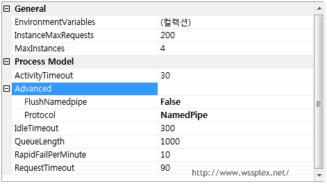 그외,. 재생 설정은 다음과 같이 appcmd 를 이용하여 설정이 가능합니다.