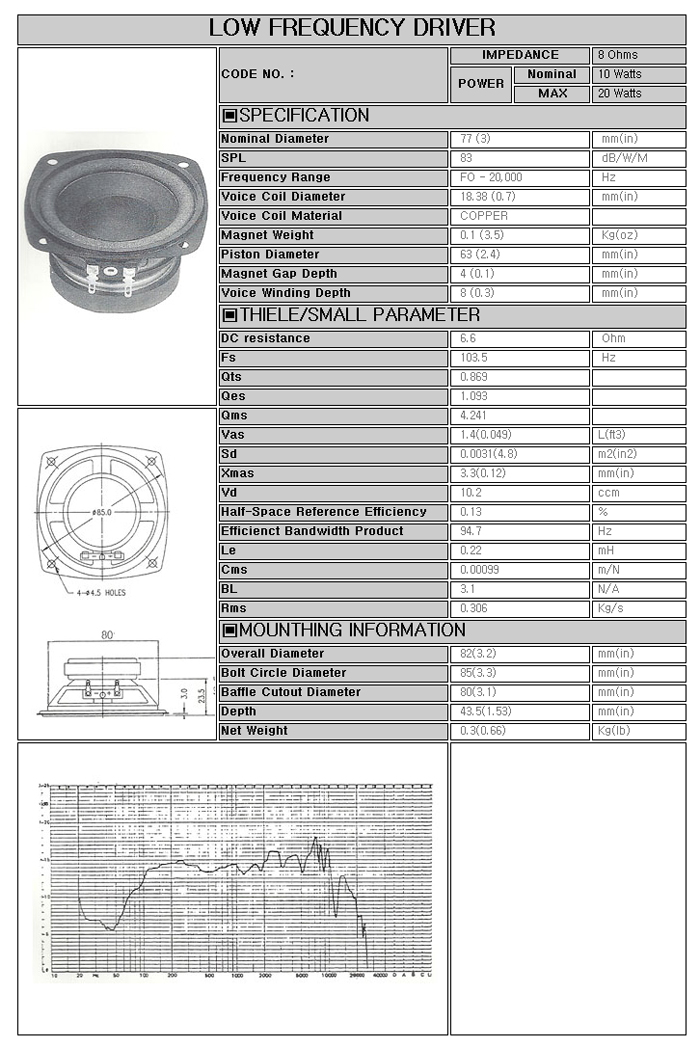 By dryoo in 3인치 — 24 10월 2015 [스피커] 삼미 CW-77B10K 77mm/3인치 풀레인지 스피커 유니트/8옴 10W 삼미 CW-77B10K 77mm/3인치 풀레인지 스피커 유니트/8옴 10W/자작용/부품용/DIY/우퍼/음악용/HIFI/고음질 용적계산기 국산이라고 무시하냐? 주문 넣었다.ㅋ